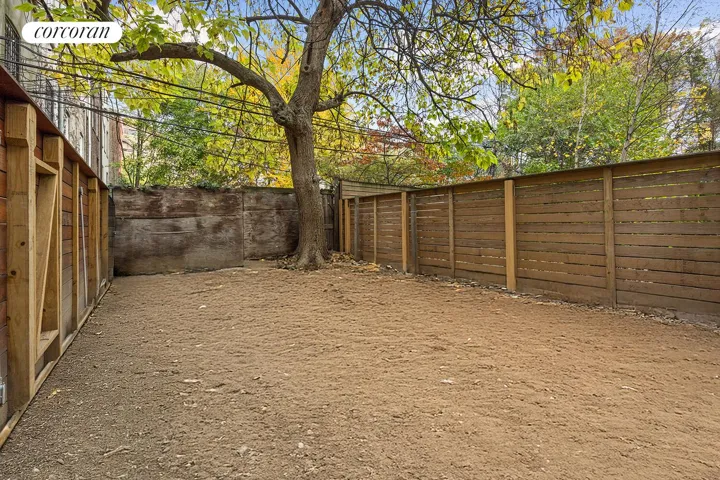 The garden level features a spacious kitchen/dining area with direct access to the private backyard, an oversized outdoor space ideal for gardening, entertaining, and creating a peaceful retreat in the center of Brooklyn. A full basement adds even more storage and workspace possibilities.