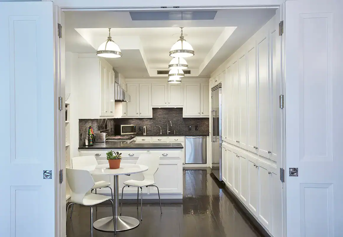 – Eat-in kitchen with top of the line appliances including a 48″ Viking Stove, Sub Zero fridge and stacked washer-dryer