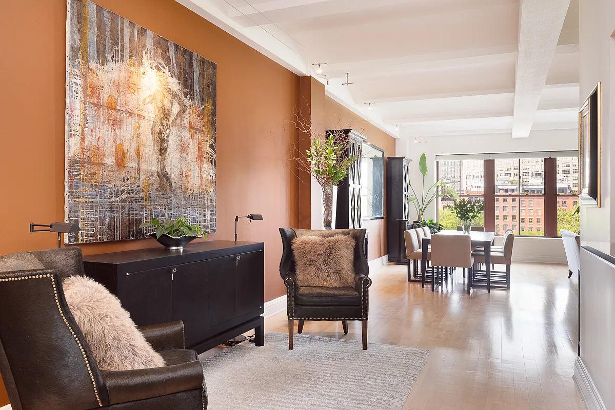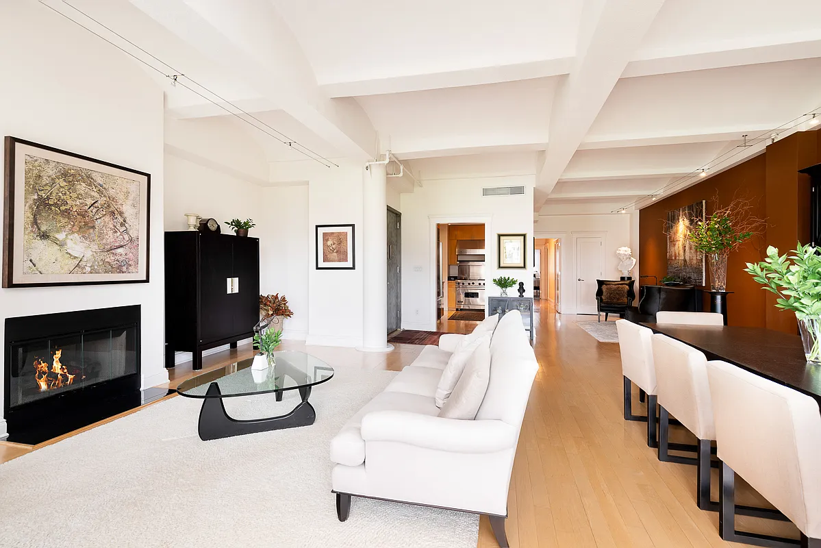 Large two bedroom loft in the renowned Ice House on N Moore Street in prime Tribeca. The elevator opens directly into the living room that features 11 foot barrel vaulted ceilings, beautiful open city views and a gas fireplace. A separate dining area is located just off the living room next to the kitchen. The bedrooms on the other side of the property are bright and quiet. The primary bedroom suite has lots of closet space including a large walk-in closet and an ensuite bathroom with double vanities, a shower and a soaking tub. The second bedroom also has a nice sized walk-in closet and there is a separate laundry room down the hall.