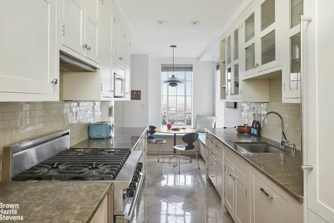 – A grand, 19″ x” 23″ Great Room with open south and east exposures looking over the Clinton/Hell’s Kitchen and Hudson Yards neighborhoods.